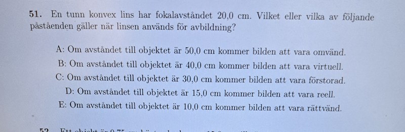 Vilka påstående stämmer när lins används för avbildning?