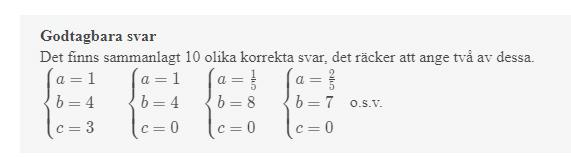 Jahaaa okej, men då förstår jag. Då kan C=0, a=1 och b=4. Men i facit vill de att man ska ge fler exempel. Skulle man inte kunna skriva C=0, a=2 och b=-1? För det de har gett som exempel är detta: