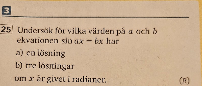 Undersök vilka värden på a och b ekvationen sin ax=bx har en lösning