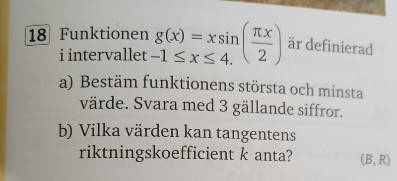 Du ska ta reda på vilka möjliga värden g'(x) kan anta.