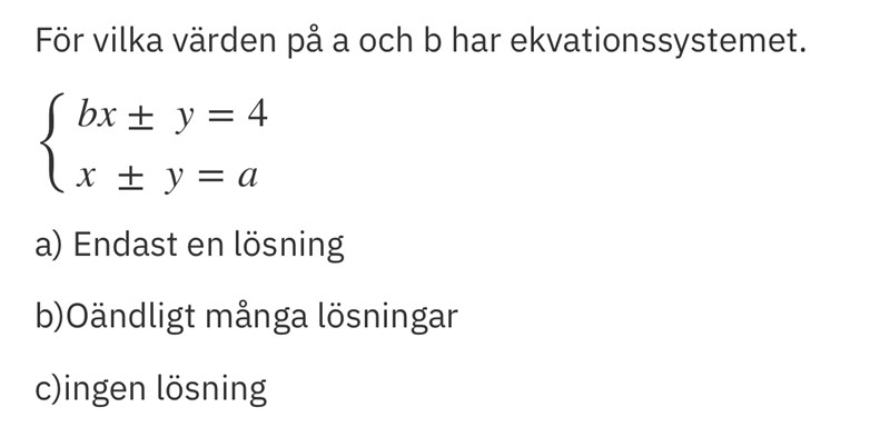c)a får ej vara 4, men b=-1