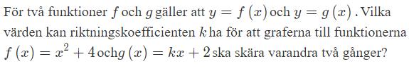 Vilka värden ska k ha för att graferna till funktionen ska skära varandra två gånger?