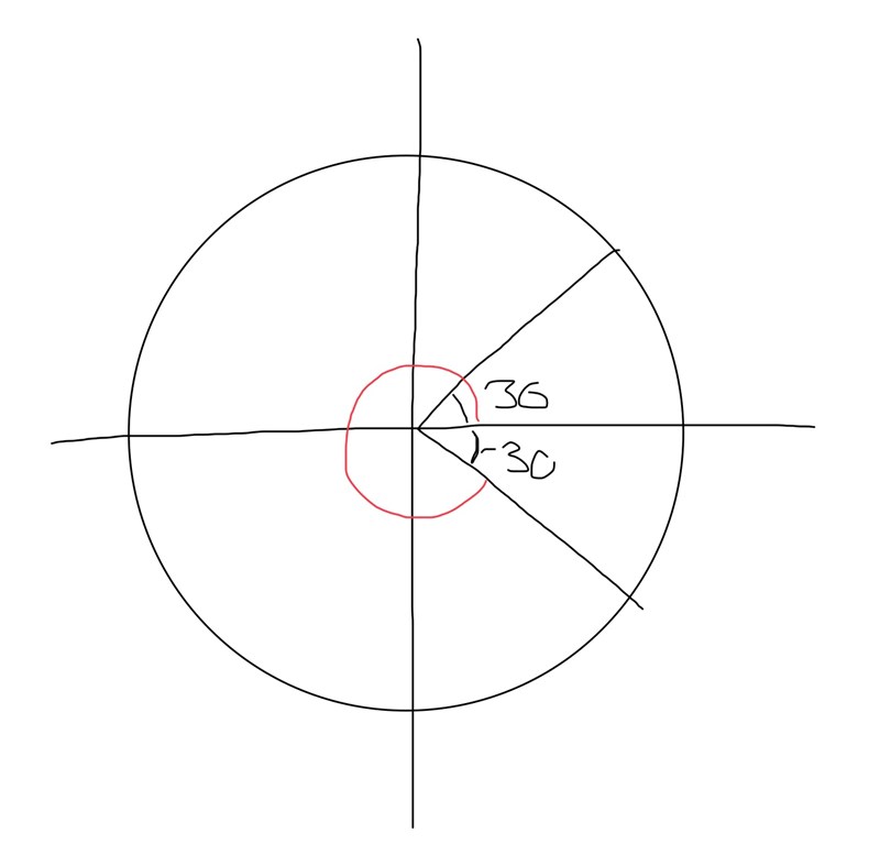jag har lite svårt med enhetscirkeln när det är negativ vinklar, jag har mha den hittat ena vinkeln men hur hittar man båda i detta fall?