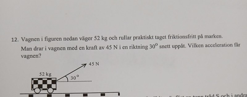 Situationen är att någon drar en vagn i ett snöre. Vagnen har hjul och kan rulla friktionsfritt.