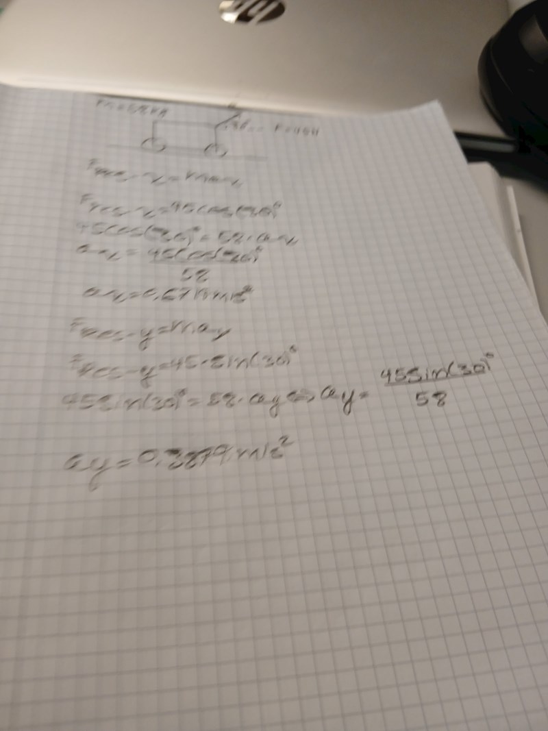 Jag undrar om du kikar på #27 fick jag fram att accelerationen i y-led var ca 0,43 m/s2