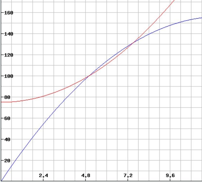 ungefär så här ser det ut med en retardation på 2 m/s2 andra värden på a gör att den blå kurvan ändrar form.