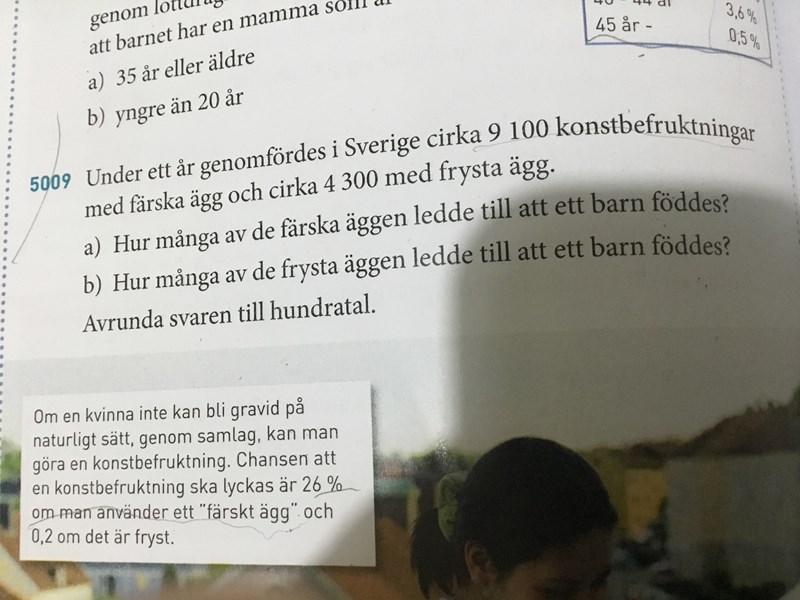 Om man t ex befruktar 100 färska ägg så föds det förmodligen ungefär 100*0,26=26 barn. Kommer ud vidare?