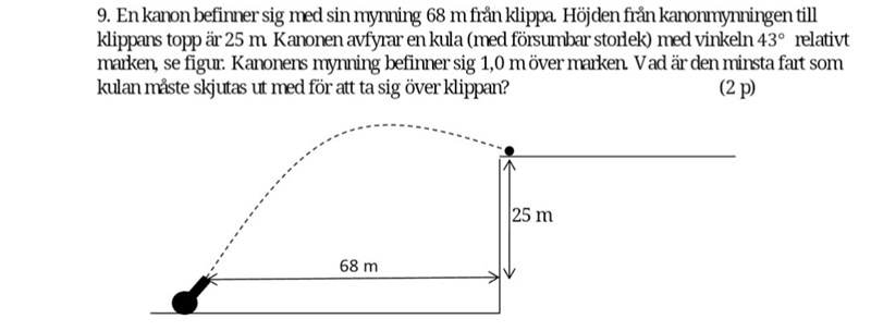 Vilken är den minsta fart som kulan måste skjutas ut med för att ta sig över klippan?