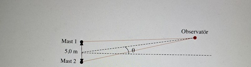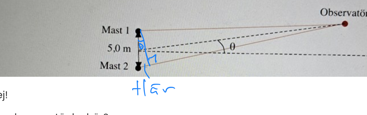 1) Menar du att linjerna från mask 1 och mask 2 som är parallellla och går till observatören i P motsvarar en halvvåglängd?