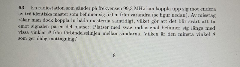 3. Jag antar att om båda maskarna är påslagna samtidigt så förstärker de varandra vilket borde konstruktiv interferens , men uppgiften snackar om dålig mottagning så det kanske är så att de ska vara ur fas dvs destruktiv interferens