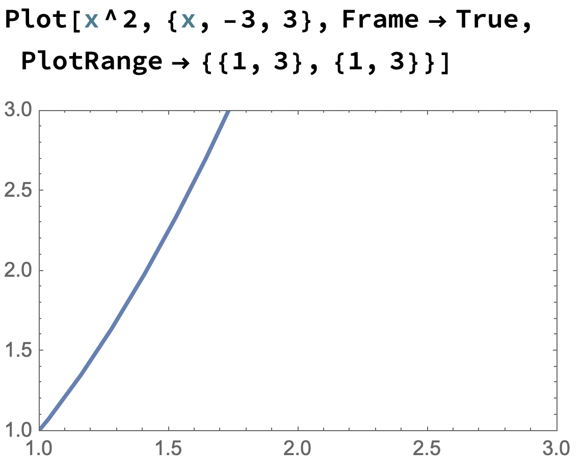 Detta är y=x^2 på -3≤x≤3 så ur den synpunkten har Mathematica ritat rätt, även om den utlämnat runda "prickar" i ytterkanterna enligt svensk skolstandard. Samma graf skulle kunna representera -3<x<3 utan något förtydligande från programmet. Många grafer i svenska läroböcker låter grafen sluta "när koordinatsystemet inte räcker till" och man frågar sig då vad är definition- och värdemängd. När jag ritade grafer (för hand) fortsatte jag alltid "svansarna" med streckade linjer för att visa att "det tar inte slut bara för att grafen tar slut". Det är ofta mkt. omständigt i de flesta ritprogram att få till. Troligen omöjligt på grafräknare. Streckade svansar var mycket förekommande under tidigt 1900-tal och man finner det i dåtidens böcker som säkert illustrerades av personer med bakgrund inom teknisk ritning.