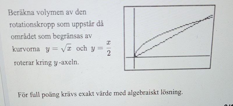 I uppgiften är rotationen runt y-axeln. Närmast y-axeln finns y=rotenur(x).
