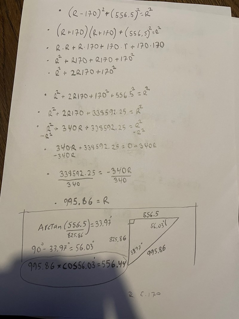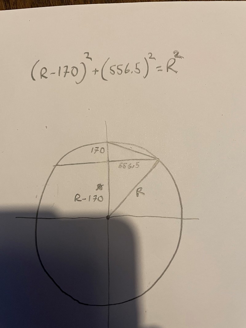 Jag vill veta hur man räknar ut vad radien är i cirkelsegmentet i figuren enligt bild 1.