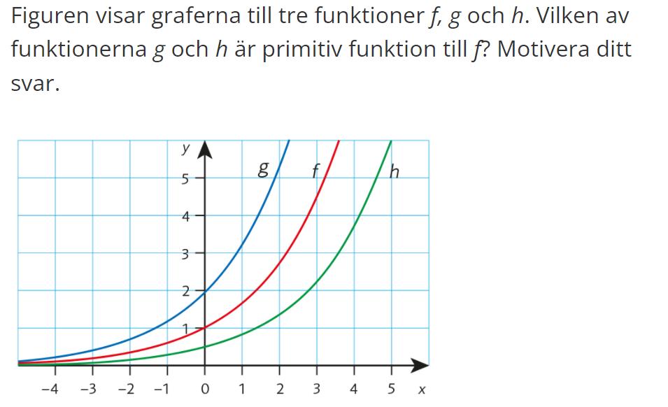 Vilken av funktionerna g och h är primitiv funktion till f?