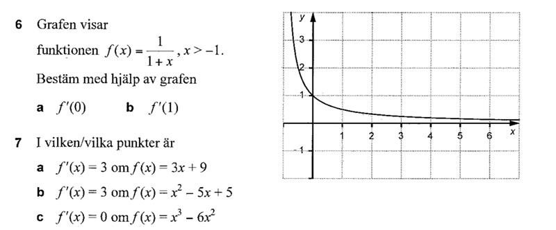försökte göra fråga 6b med deriverings regler och differenskvoten. Och fick -0,5 som svar. Dock stämmer det inte överens med facit. Vad är det för fel har jag gjort ?