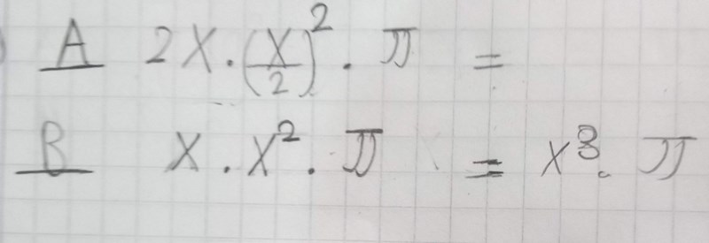 Skillnaden mellan "A" och "B" är alltså om vi sätter in "x" i uttrycket för radien "r" eller höjden "h".