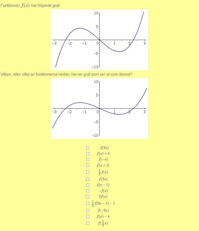Vilken, eller vilka av funktionerna nedan, har en graf som ser ut som denna?
