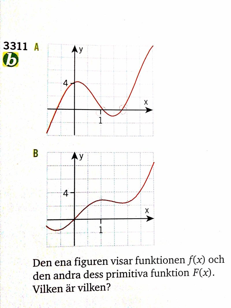 Hej! Jag har lite svårigheter med att förstå mig på varför den primitiva funktionen är figur B, och varför dess derivata är figur A:
