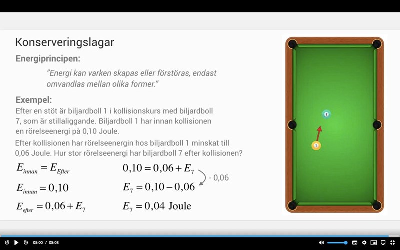 Du behöver använda dig av att summan av arörelsemängden är konstant, och formeln för att beräkna rörelseenergin.