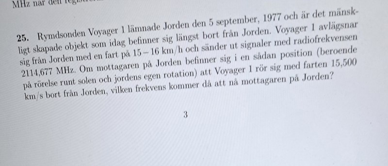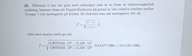 okej men jag förstår inte hur man kan tänka sig att detta är radiovågor och man ska använda dopplereffekten vid elektromagnetisk strålning? Hm juste vad dum jag är. Detta händer i rymden ju med rymdsonden..