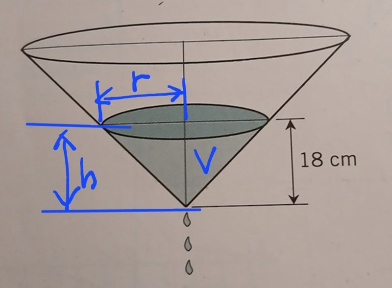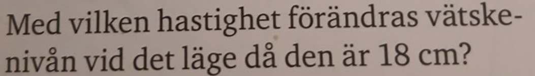 Kedjeregeln ger oss dVdt=dVdh·dhdt\frac{dV}{dt}=\frac{dV}{dh}\cdot\frac{dh}{dt}