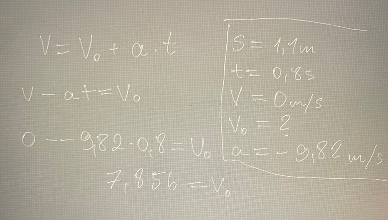 Skulle bollens hastighet vara 0 efter 0.8sekunder så skulle starthastigheten varit 7,9m/s.