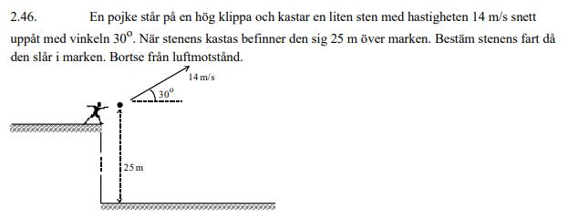 Vilken hastighet stenen får beror väl på om man tittar i x-led, y-led etc. Rörelse i olika riktningar är väl oberoende av varandra? Dvs. den kommer ha en hastighet nedåt innan den slår ned i marken () samt en hastighet i x-led osv. Hur ska man veta vilken som åsyftas?