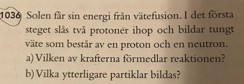 Vilken kraft förmedlar reaktionen och vilka ytterligare partiklar bildas?