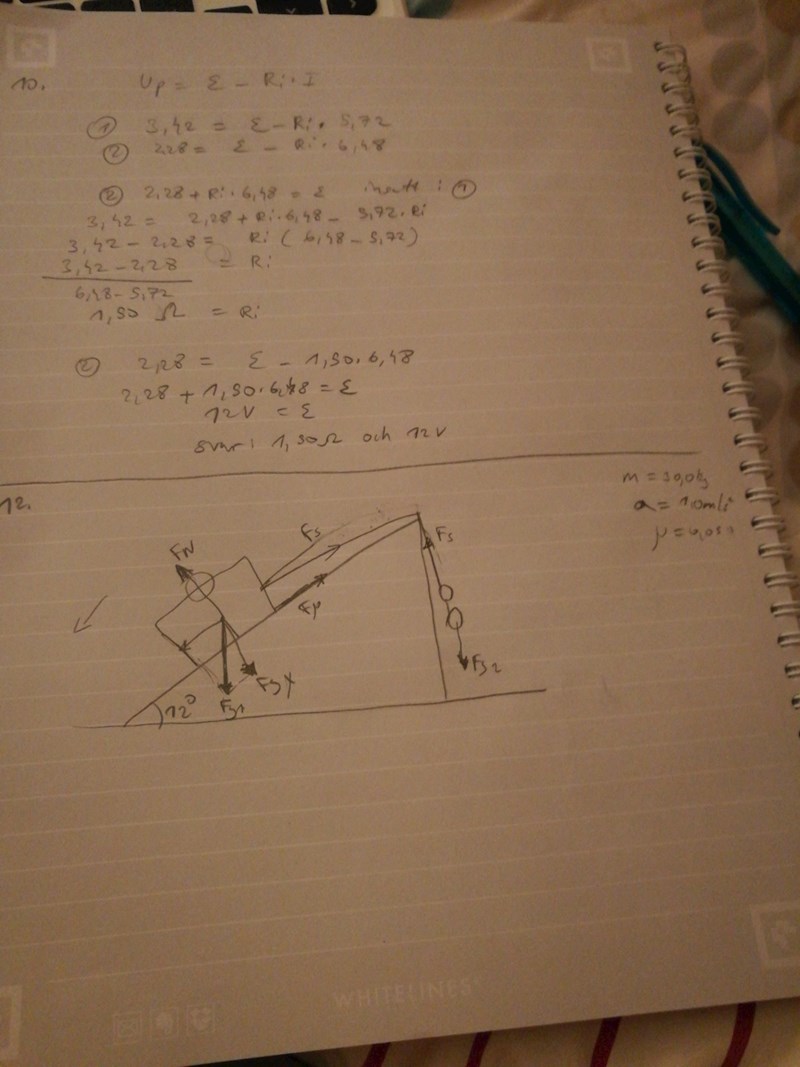 Peter skrev:Mahiya99 skrev:Fres= Fgx-Fmy-Fs första ekvationen