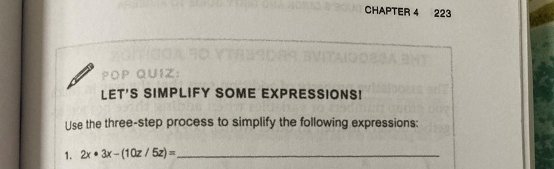 Men I ditt fall så består parentesen endast av en term, nämligen kvoten 10z5z\frac{10z}{5z}.