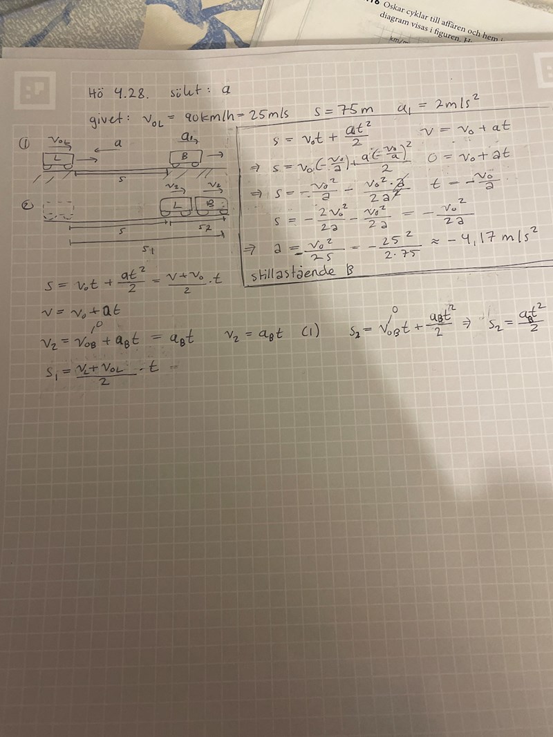 S1 är lite knepigare. Mitt ser ut så här . Där är vad sträckan blivit utan bromsning. Den andra termen blir negativ med bromsning och när så är avståndet noll.