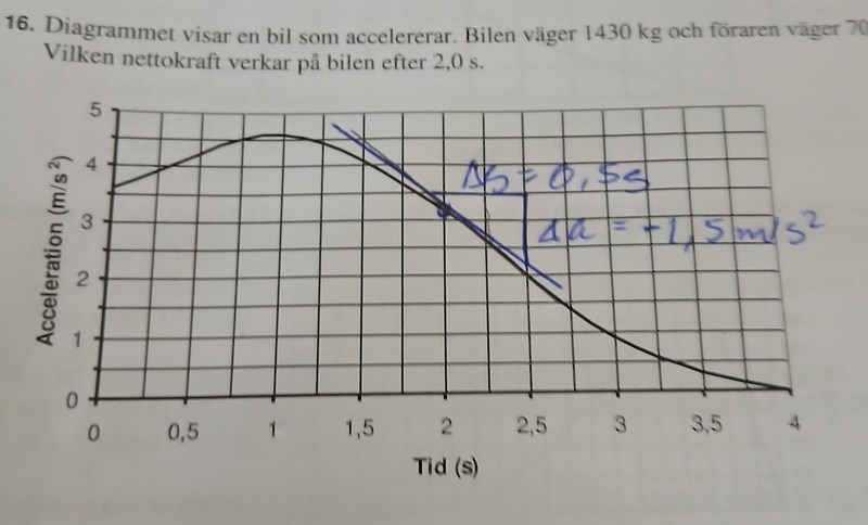 Vilken nettokraft verkar på bilden efter 2 sek ?