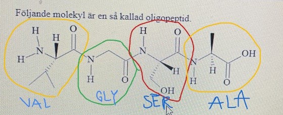 Följande molekyl är en så kallad oligopeptid.
