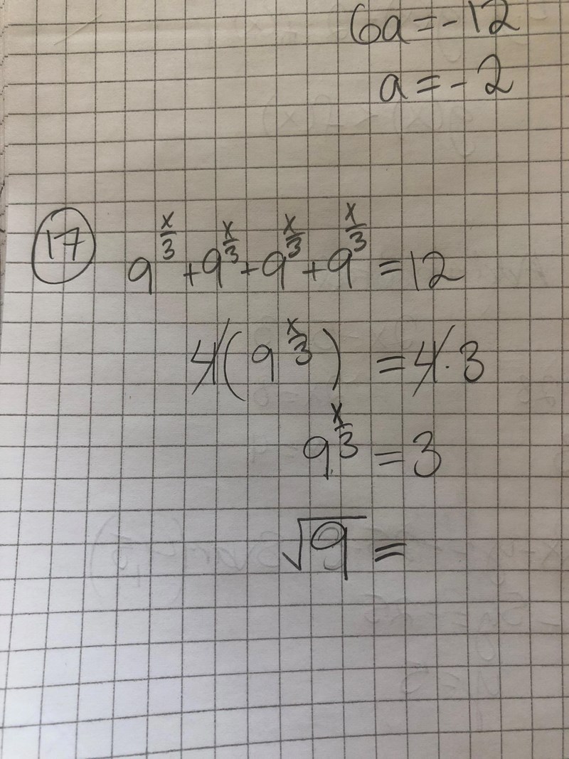 Hade jag stått bakom ryggen på dig och du pekat i ditt anteckningsblock skulle jag antagligen använt tummen för att täcka över x/3 och sagt att "Du har alltså att 9 upphöjt till 'någonting' blir 3, vad är då detta någonting?".