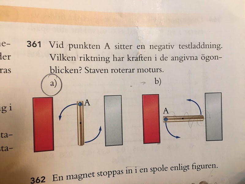 skulle någon kunna hjälpa mig förstå hur man ska veta riktningen i a) och b) enligt högerhandsregeln där fingrarna är B-fält, tummen ström och handflatan kraft?