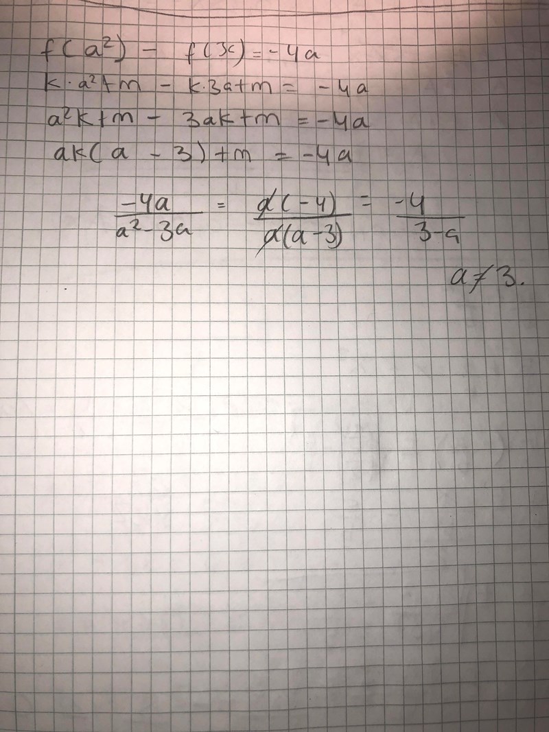 f (x) då f ( a upphöjt till 2) - f (3a) = -4a