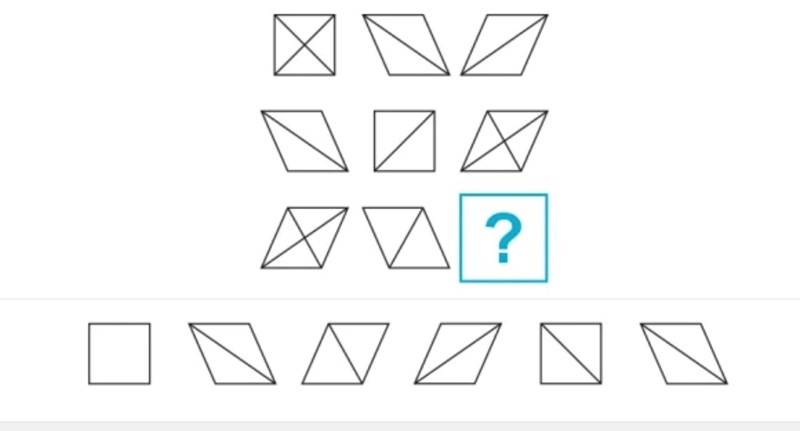 vad konstig jag har olika linjer och den 9 efterfrågar de vilket alternativ av de sex under liggande kvadraten passar in i frågetecknet=)