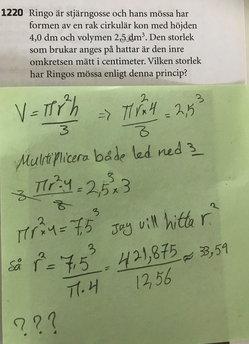 Hej! tack för svar, men om jag dividera bara 7,5/ 12,56 svaret fortfarande är fel på facit det är 49.