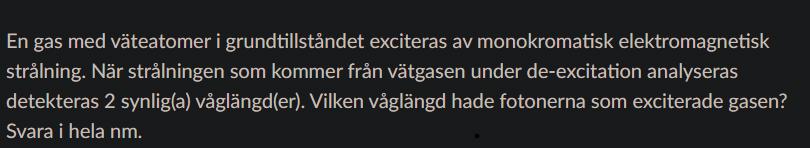 Vilken våglängd hade fotonerna som exciterade gasen?