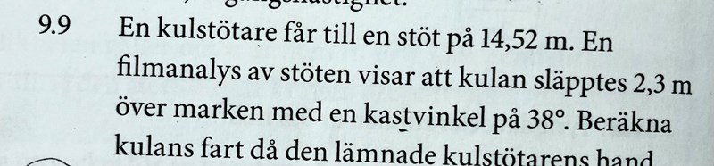 Du kan ju alltid lätt kontrollräkna utifrån svaret. Hur långt blir kastet om farten är 1,84 m/s?