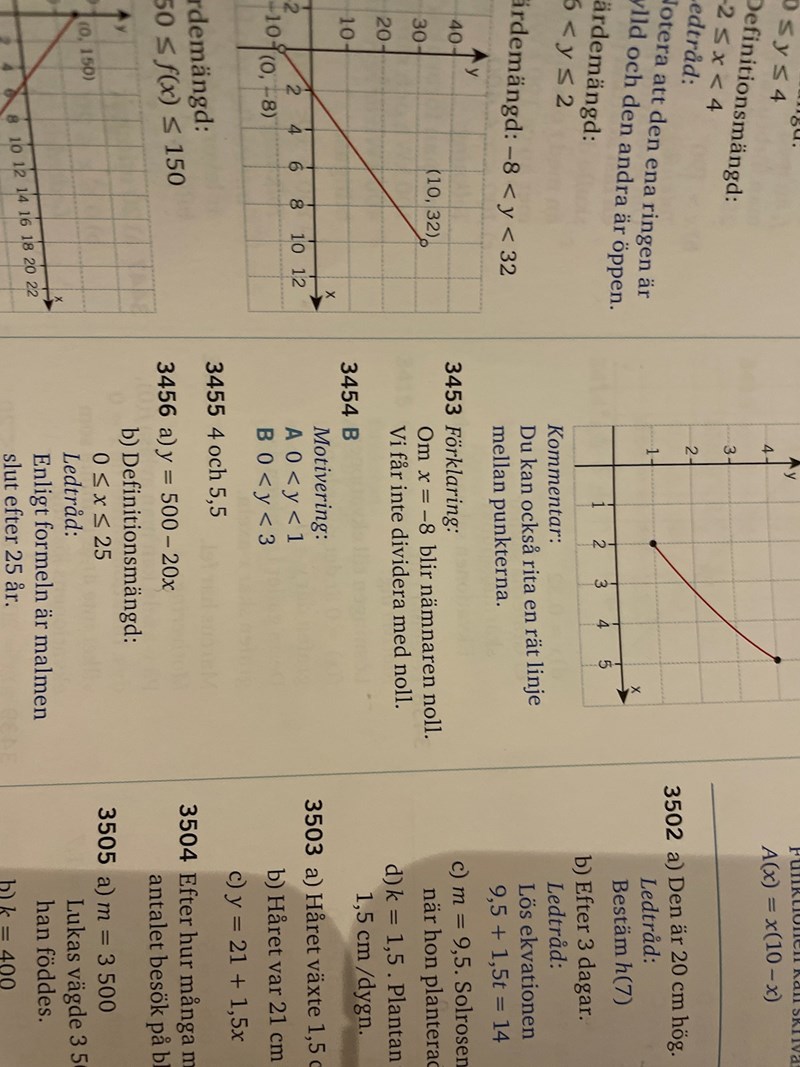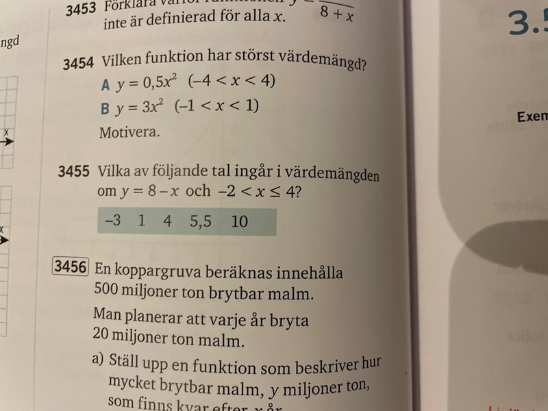 om x= (-3) för funktion A. Kan y vara 4,5. men redan då menar facit att jag har fel. A värdemängd är 0 < y < 1 ..
