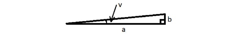 Lutningens storlek anges i förhållande till horisontalplanet och mäts i %. (Kvoten mellan höjden b och horisontalplanets längd a ger lutningen i procent, se bilden nedan) Vilken vinkel v i grader motsvarar 9% lutning?