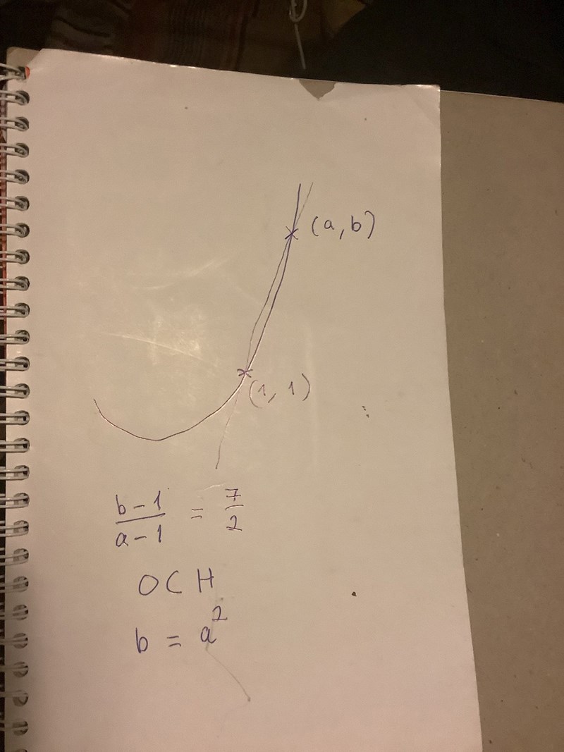 Sekanten skär i (1, 1) och (a, b) för att slippa index. Det ger din ekv
