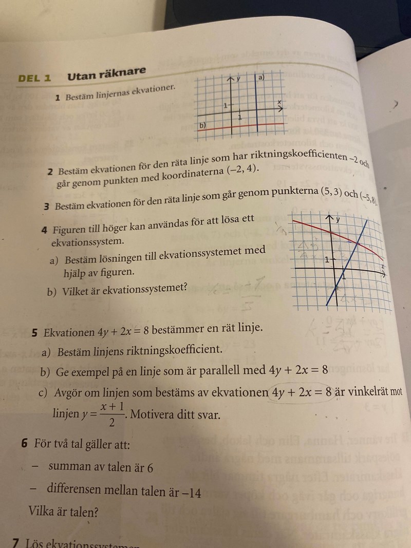 Den blå linjen kommer bli: y=5/3x-2 och den röda: y=....+4