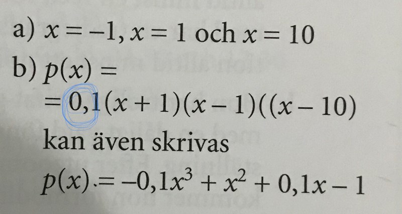 Massa skrev:Vad blir då polynomets värde (utan 0,1) för x=0?