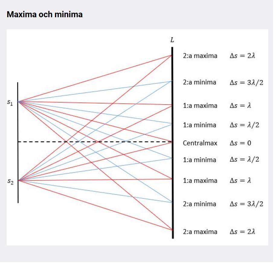 jaha de menar alltså mellan 2:a maxima och 3:a minima? då är det ju delta L= 5lambda/2-4lambda/2=lambda/2