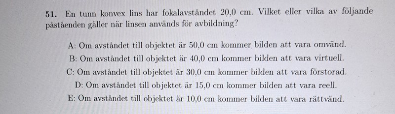 Vilket eller vilka av följande påstående gäller när lins används för avbildning?