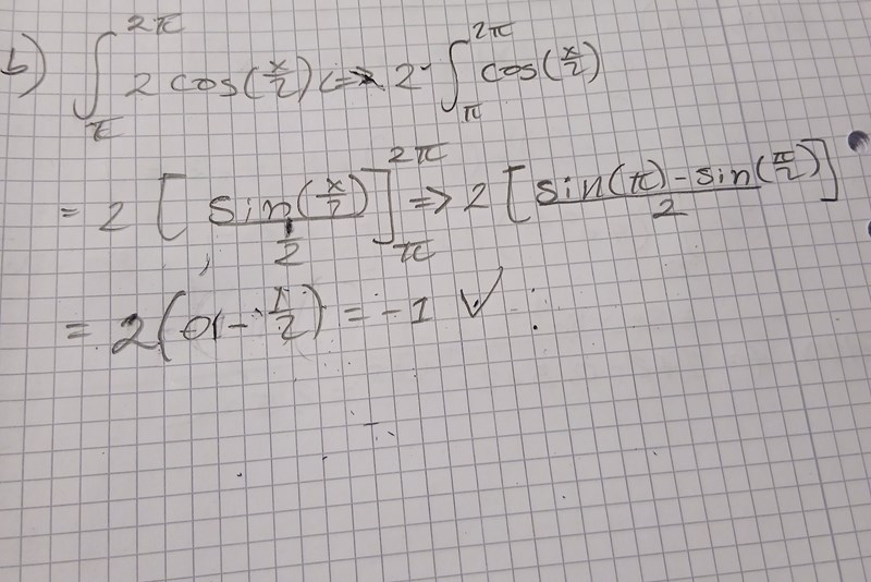 - Jag gissar på en primitiv funktion F(x) = 2*sin(x/2)