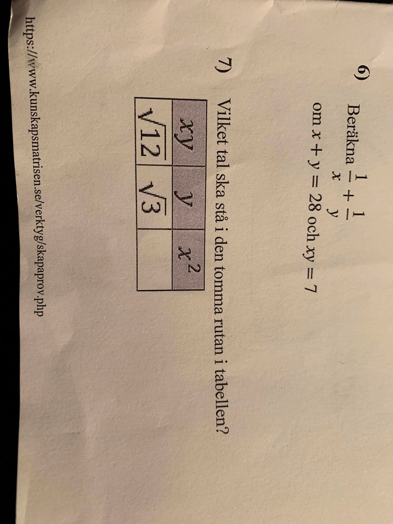 Hej! Hade jag kunnat få hjälp på uppgift sju? Jag tror att svaret är (roten ur12-roten ur3)^2