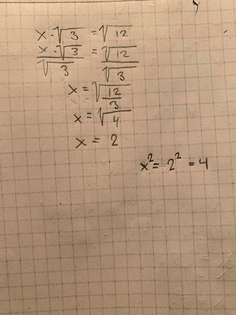 Oj menade självklart = roten ur12! Är X^2 (x*roten ur tre)^2